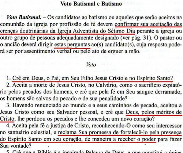 Voto Batismal, encontrado à página 32 do Manual não exige que se creia nesse