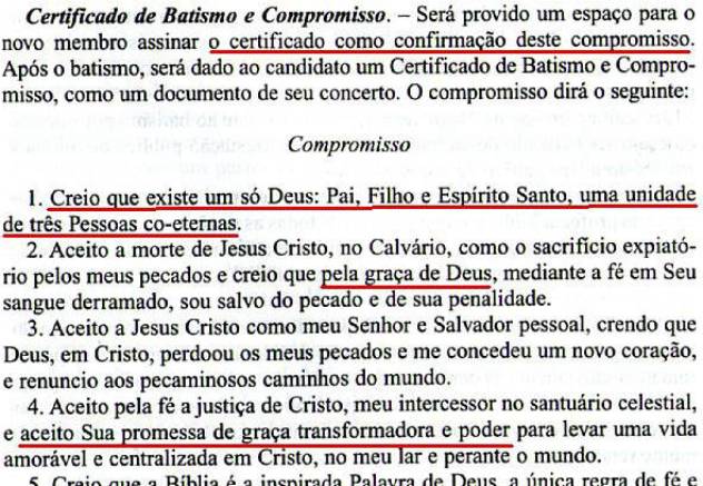certificado de batismo é diferente e exige a crença na Trindade ao batizando.