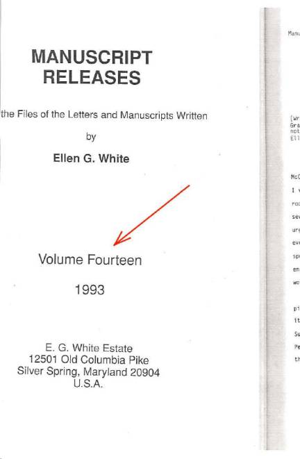 Manuscritos de Ellen G. White Liberados pelo White Estate, impressa em 1993.