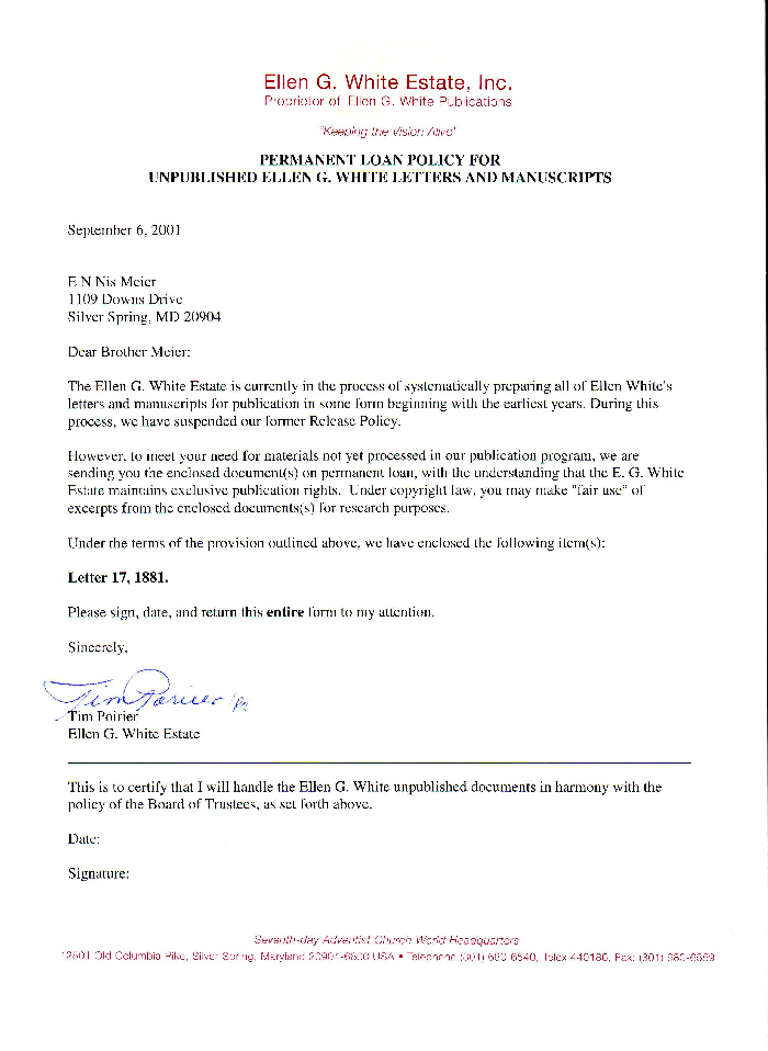 Isto é para certificar que eu usarei os documentos do Ellen G. White documentos não publicados em harmonia com o Conselho Deliberativo, como dito acima.