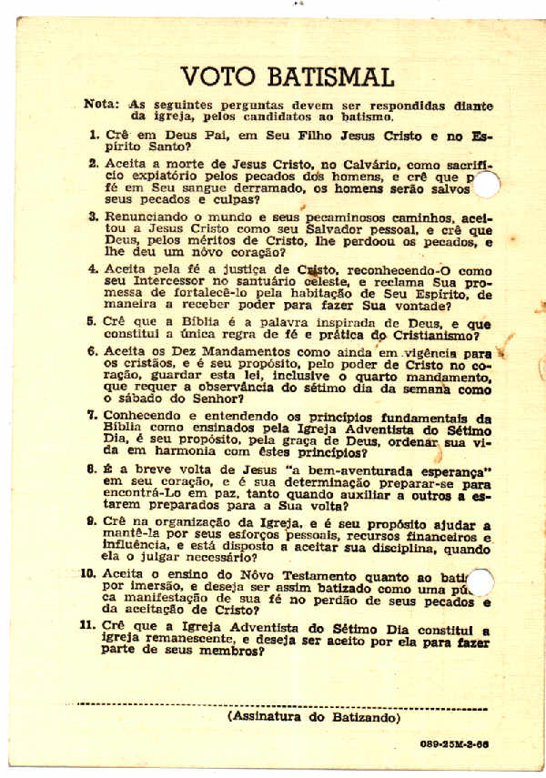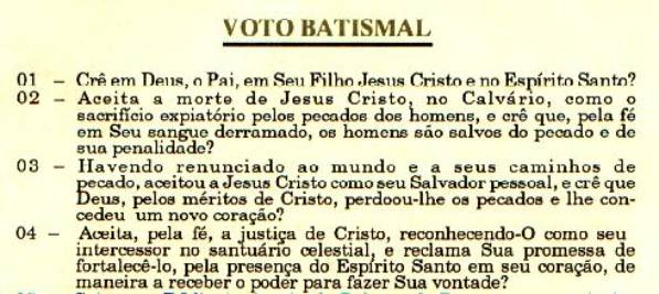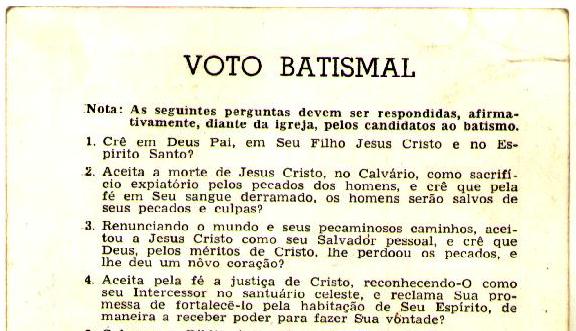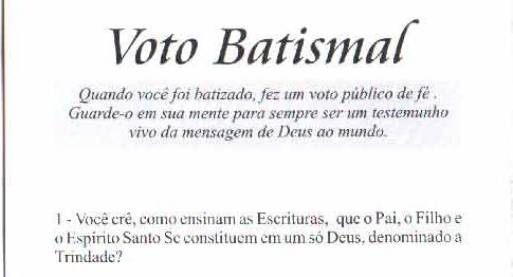 abaixo, o texto do Voto Batismal não sofreu alteração e continuou tendo apenas