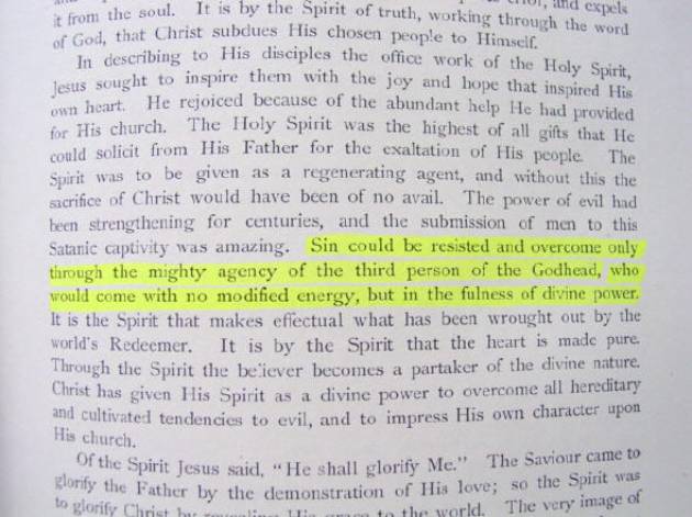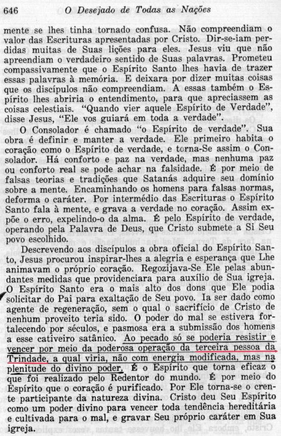 idéia de que Ellen G. White teria crido na Trindade. A citação do livro “Desire